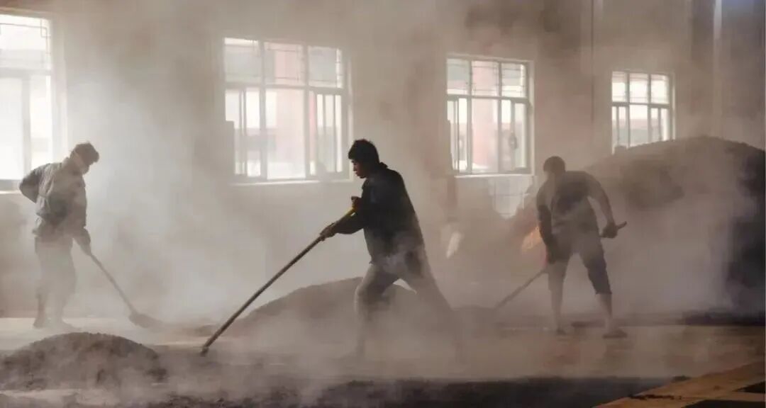 第一轮次取酒之后的酒醅,将再次进行摊凉、加曲、堆积、入窖发酵等流程,循环往复直到第七轮次取酒结束。