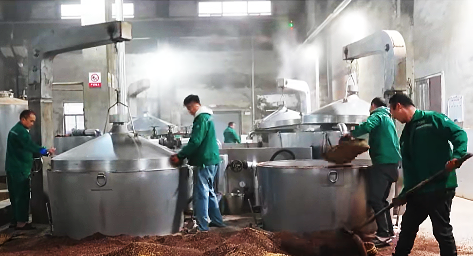 △工人在酒醅中加入谷壳,谷壳起到支撑疏松作用,避免粘结利于溶氧发酵。